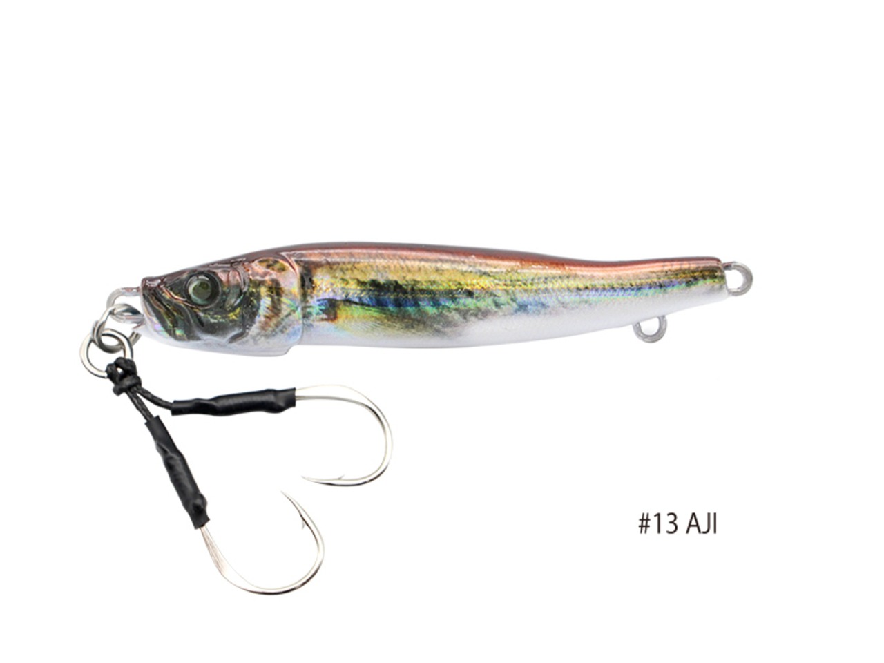 Metal Addict 04 that is both more realistic and compact. Developed so that you can bring in a bite with action, form, and size. Lure the target with an asymmetric body that takes action by receiving water currents and a real form that looks like a bait. Finished with a quality that sets it apart from general metal jigs. An assist eye that responds to Angler's ideas is adopted. Like the Metal Addict03, it is possible to build an assist hook system and replace blades and assists.