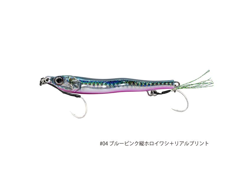 falls while maintaining a horizontal posture even when it falls. Metal Addict 03 is an anchovy model that approaches by lifting and falling while riding on the tide and is closer to a fly of fly fishing than a metal jig. In addition, panic action with twitch and jerk can be performed like a top water plug.