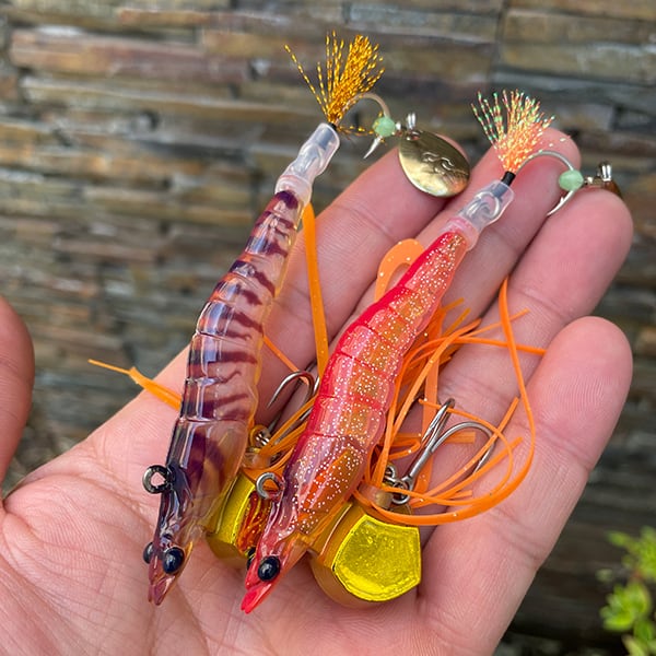 Fuses a realistic shrimp body with a flashing weight that avoids getting caught on roots. Equipped with a removable soft silicone rubber and tie that produces an outstanding sense of life, and an original blade that produces fascinating flashing and wave action. The lure can be reeled in, lifted and fallen, or bumped on the bottom to approach the target with any technique. Available in weights from 10g to 80g. It can appeal to all kinds of targets regardless of the field or depth.