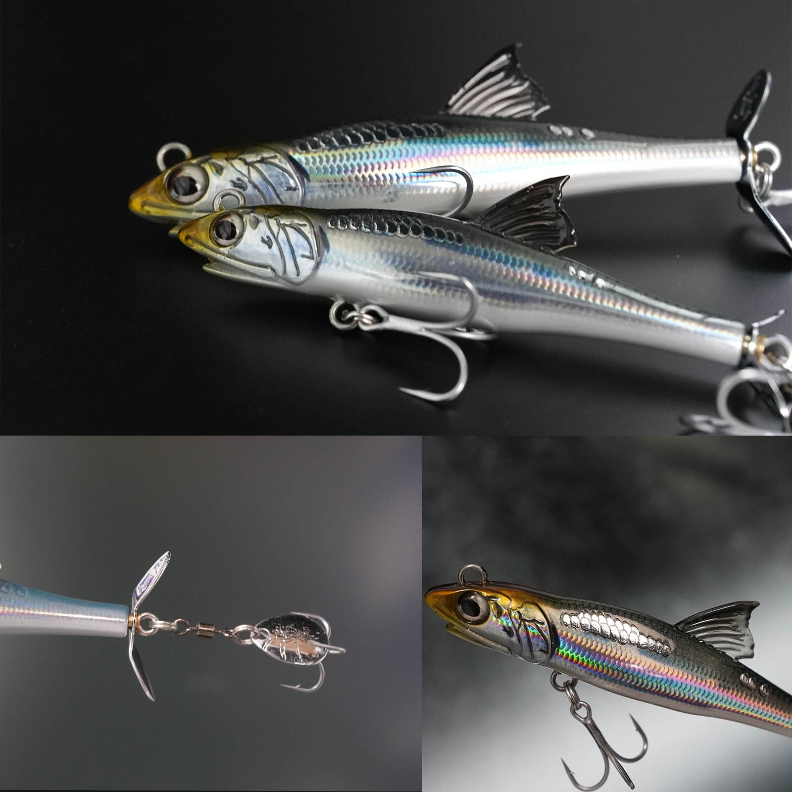 プロペラとブレードがついた他にないニュータイプルアー。原型のモデルはカタクチイワシ。